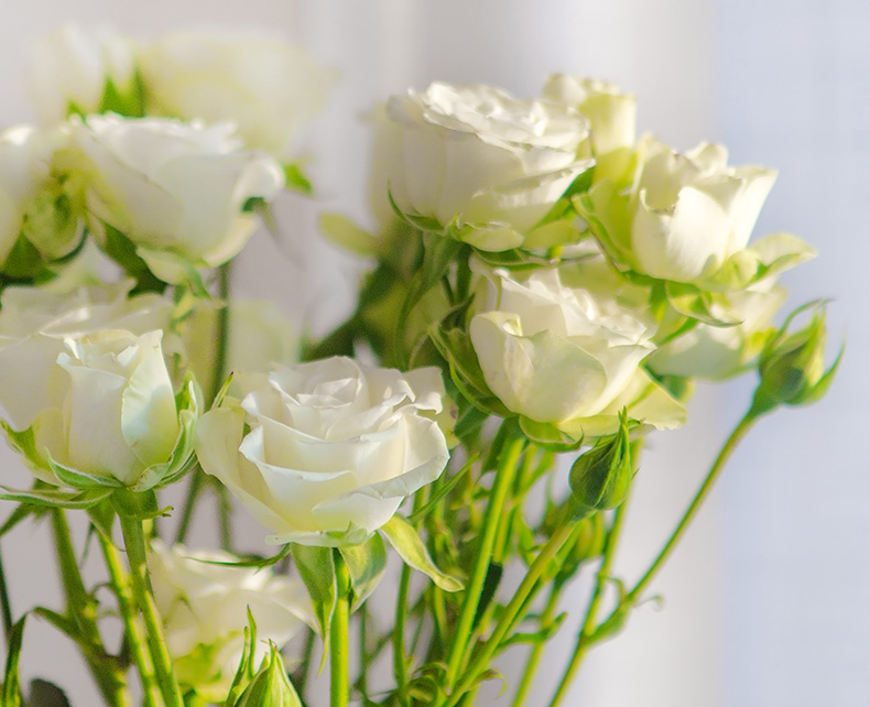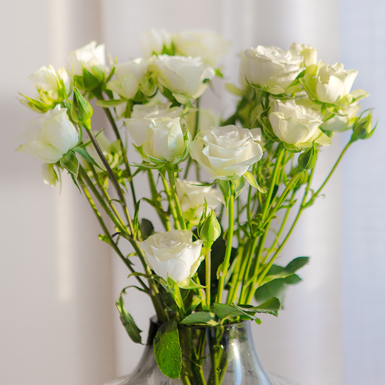 多头玫瑰很适合初恋情侣之间表达爱意,也代表人们对美好生活的向往。花色清新纯粹,白的可爱迷人。花型优美,圆润饱满。花语:纯洁、珍惜眼前人